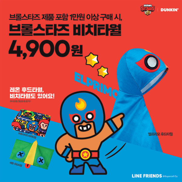 던킨에서 만나볼 수 있는~ 브롤스타즈 캐릭터 ‘비치타월’