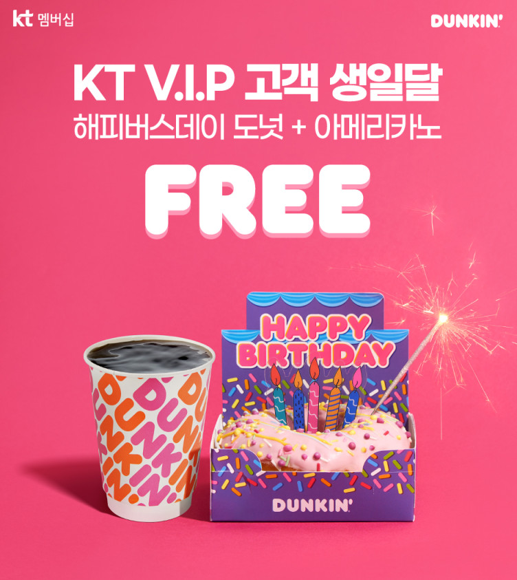 DUNKIN x KT 페이지 정보 본문 KT VIP 고객 생일달 해피버스데이 도넛 + 아메리카노 FREE! 이전글덩킨 교촌 도넛팩 할인 22.08.01 다음글던킨 I 포켓몬 22.08.01 목록