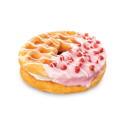상큼한 딸기잼과 딸기초콜릿이 조화로운 달콤한 와플모양의 시그니처 도넛