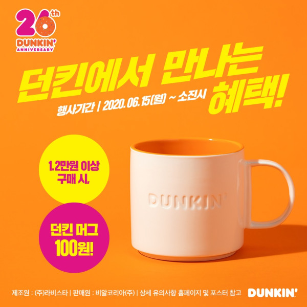 - 12,000원 이상 구매시 도자기 재질의 ‘던킨 머그’ 100원에 구입 가능
