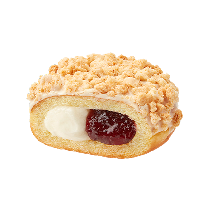 크럼블 토핑과 화이트& 스트로베리 듀얼 필링으로 맘모스빵을 표현한 도넛